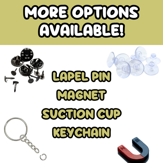 All Pinnow designs are available as Lapel Pins, Magnets, and Suction Cups!