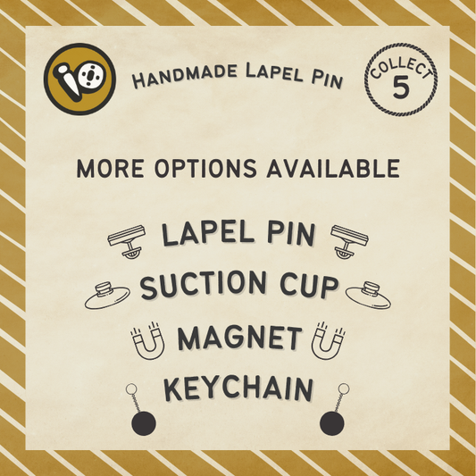 All Pinnow designs are available as Lapel Pins, Magnets, and Suction Cups!