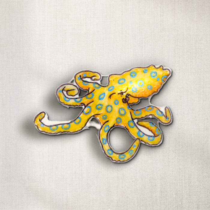 Delve into the mesmerizing world of the Blue-Ringed Octopus with our handmade shrink plastic products! Each item celebrates the beauty and intrigue of these fascinating cephalopods.