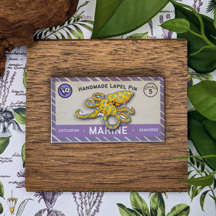 Lapel Pin: Wear your admiration for the Blue Ringed Octopus with our charming lapel pin, perfect for adding a touch of aquatic flair to any outfit.