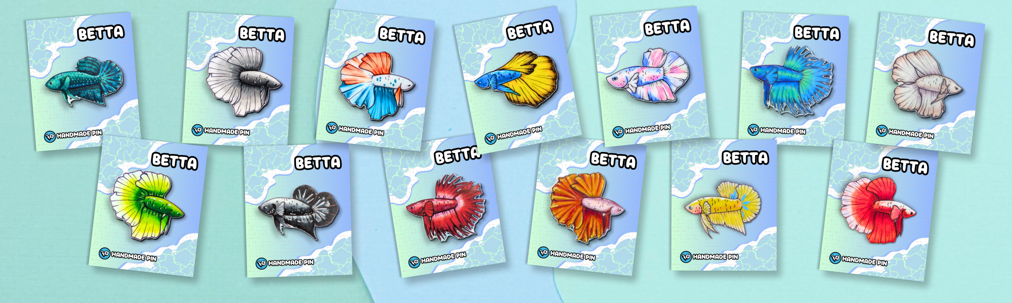 Pins - (Features two clasps) Wear your admiration for your fish with our charming lapel pin, perfect for adding a touch of aquatic flair to any outfit.