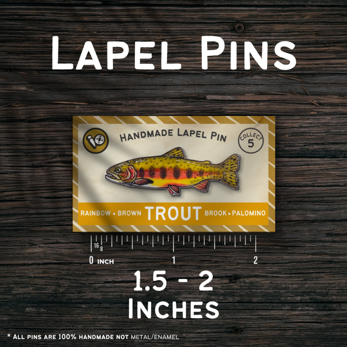Lapel Pin: Wear your admiration for the Golden Trout with our charming lapel pin, perfect for adding a touch of aquatic flair to any outfit.