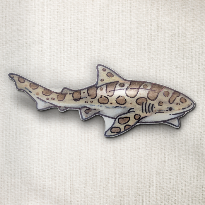Lapel Pin: Wear your admiration for the Leopard Shark with our charming lapel pin, perfect for adding a touch of aquatic flair to any outfit.