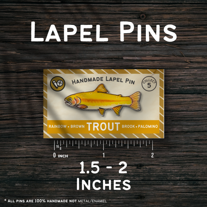 Lapel Pin: Wear your admiration for the Palomino Trout with our charming lapel pin, perfect for adding a touch of aquatic flair to any outfit.