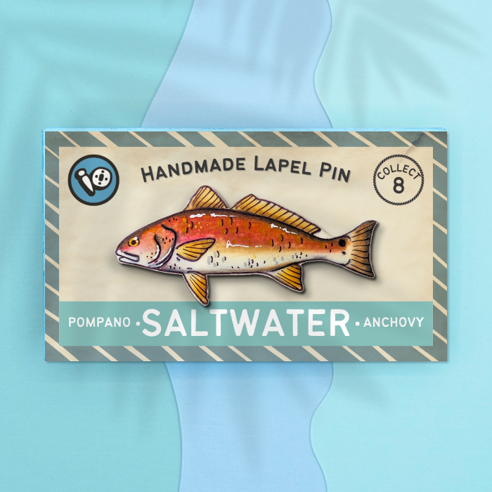 Lapel Pin: Wear your admiration for the Red Drum with our charming lapel pin, perfect for adding a touch of aquatic flair to any outfit.