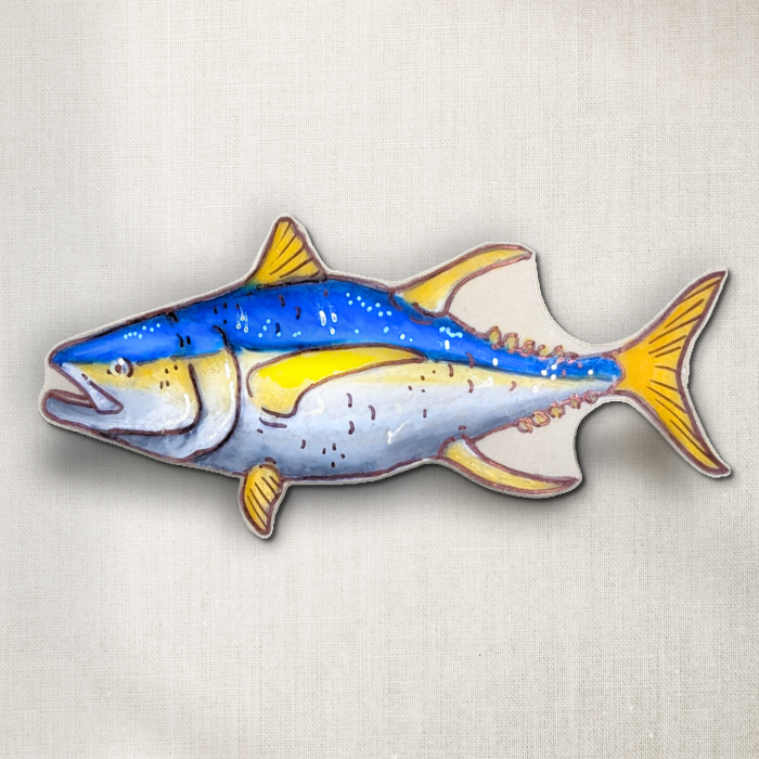 About Us: As a dedicated fish enthusiast and aquarium owner, I'm thrilled to share the beauty of the Yellowfin Tuna through my handmade creations. Please note that these are HANDMADE products! Slight variations will occur from original photo. These are not metal or enamel and are slightly more fragile due to this.